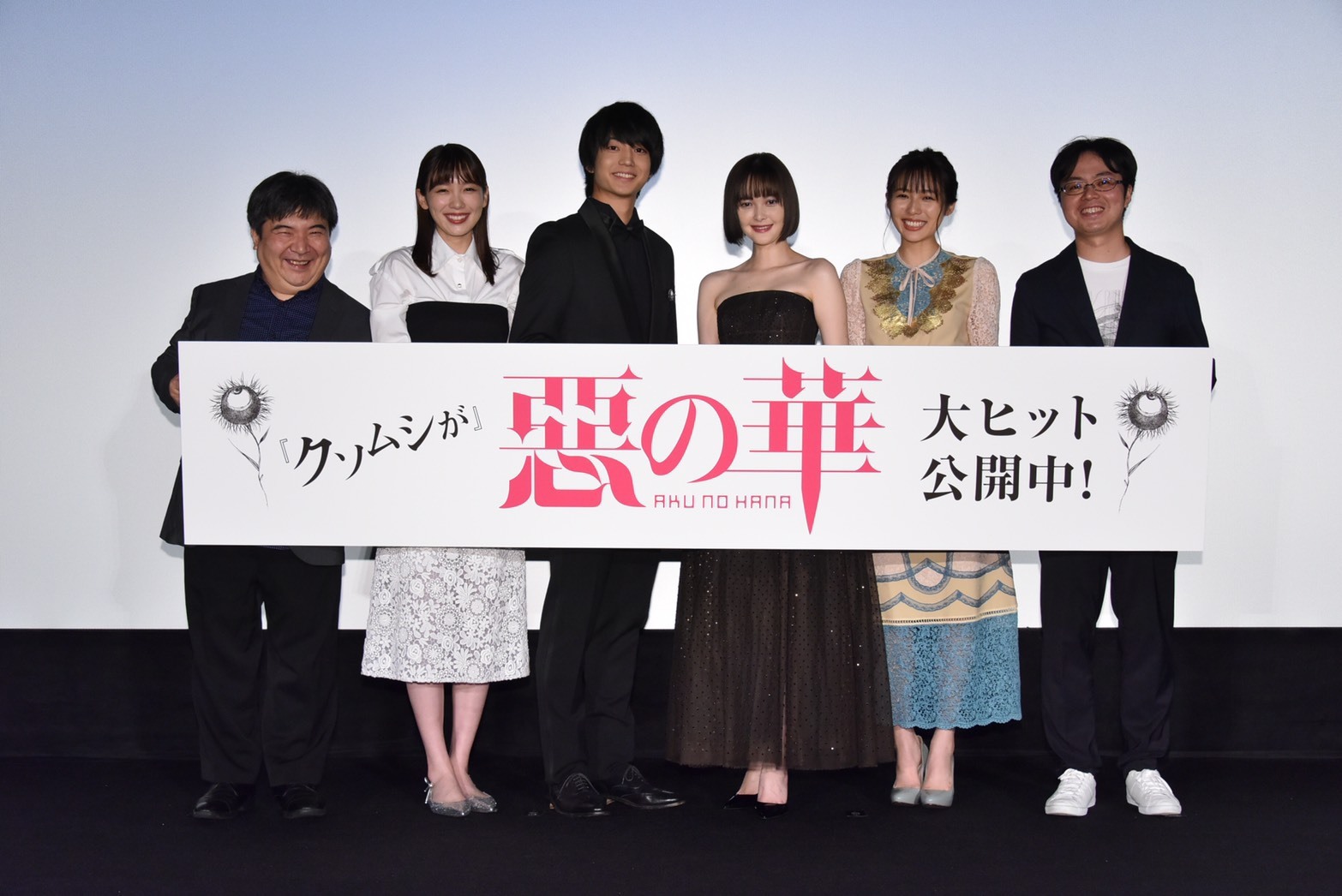9月28日(土)、映画『惡の華』の公開記念舞台挨拶が東京・TOHOシネマズ 日比谷にて行われ、伊藤健太郎、玉城ティナ、飯豊まりえ、秋田汐梨、メガホンをとった井口昇監督、原作者の押見修造氏が登壇した。
