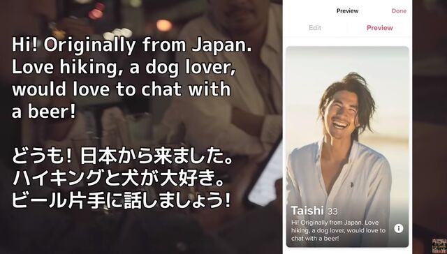 また、実際に撮ったプロフィール写真なども紹介しつつ「完璧です。モテないわけがない。笑」「これで性格がよくて、一途で、セクシーで、可愛いアメリカ人に出会える」と期待に胸を膨らませている様子で、「サンタモニカのビーチでサンセットを見たり、めちゃデートらしいことしたいぜー!!」と願望を述べ、「僕の新しい恋がスタートします。どんな感じでTinderに登録したのか!?続きはこちらからご覧ください」と、動画へのリンクを紹介しブログを締めくくった。