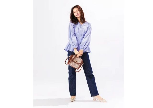 「デニムにブルーのシャツの衣装がお気に入りです。デニムはハイウエストで脚が綺麗に見えるし、シャツは素材感がしっかりしているので綺麗な形をキープしてくれたり色味が爽やかなので顔を明るく見せてくれて春にぴったりだなと思いました!」