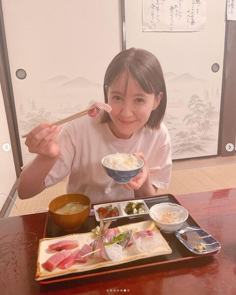 定食を前に白飯の茶わんを持った無邪気な姿を投稿したトリンドル。