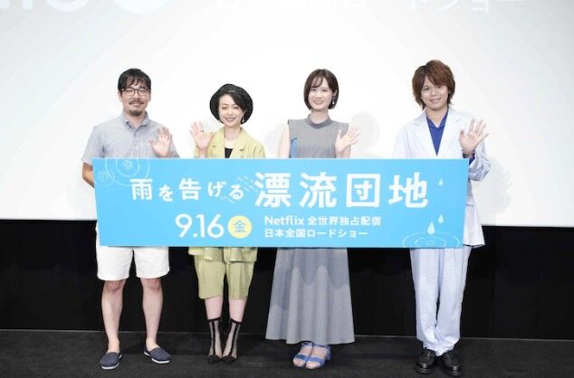 同作のシンボルでもある団地について、石田監督は「団地自体はさまざまな映画で描かれたモチーフですけど、団地が漂流するというのは聞いたことがないなと思って。船や空母といったカッコいいものが漂流するのはイメージできるのですが、あえて団地を漂流させる少しおバカな感じが気に入ってそのまま映画にしてしまいました!」と明かす。さらに団地に魅了され、団地に住み始めたという“団地愛”エピソードが飛び出すと、ほかの登壇者も驚きの声をあげた。